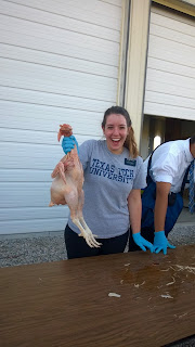 I'm sorry that my email is late. It was kind of intentional though because I wanted to wait until I could tell you about the chicken killing yesterday! So people here grow everything they eat. Even the chickens! They'll get the eggs from them for a while and then they'll kill them to eat. It was kind of inhuman looking. But it was pretty cool to see the process of it! They had this little machine that you put the dead chickens in and it plucks it for you! It was so neat! The pictures are the best though. Afterwards we all had a ping pong tournament. I've never played ping pong before but I wasn't all that bad!